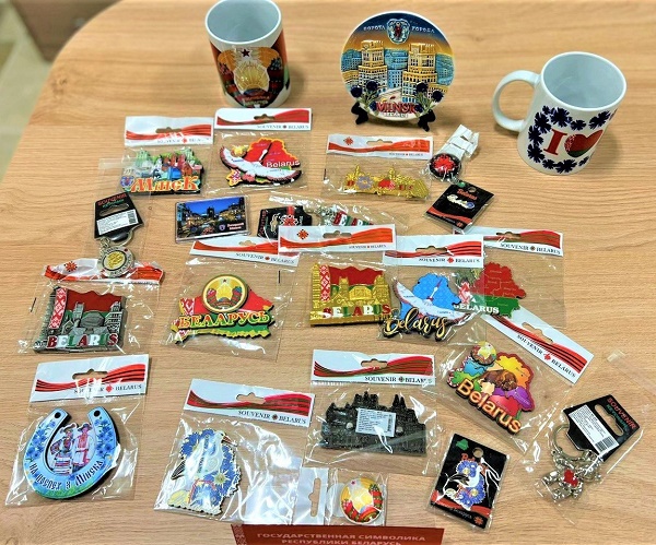 Особое внимание уделяется и наличию государственной символики: в ближайшее время ассортимент пополнится большим количеством креативных значков, брелоков, магнитов соответствующей тематики. Причем сами полки с государственной символикой обозначены специальными табличками.