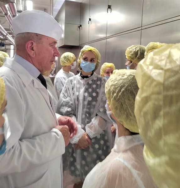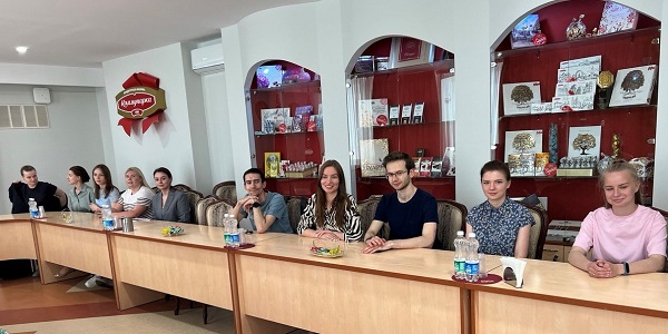 Генеральный директор Сергей Анатольевич Анюховский в ходе встречи рассказал о работе фабрики. Далее посыпались вопросы от молодых медиков: «Какая самая крутая кондитерская фабрика в стране?», «Из какой страны Вам поставляют сырье?», «Почему Китай – второй рынок по поставкам после России, если численность населения у них настолько высокая?», «Какой алкоголь содержится в шоколадных бутылочках и конфетах «Столичные»?».