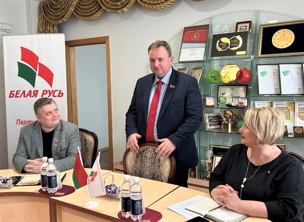 Затым генеральны дырэктар адказаў на пытанні прысутных старшыняў першасных арганізацый РГА «Белая Русь», якія цікавіліся наяўнасцю сыравіны, рынкаў збыту прадукцыі, колькасцю супрацоўнікаў, уцягнутых у дзейнасць канструктыўных грамадскіх аб'яднанняў.