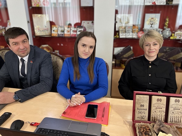 Генеральны дырэктар СААТ» Камунарка " Сяргей Анатольевіч Анюхоўскі распавёў аб нашай фабрыцы, асабліва спыніўшыся на стварэнні інавацыйнага імпартазамяшчальнай вытворчасці поўнага цыкла па перапрацоўцы какава-бабоў. "Вытворчасць экалагічна бяспечная, сёння ў вас будзе магчымасць убачыць цэх абсмажвання і пераканацца ў гэтым самім», – падкрэсліў Сяргей Анатольевіч.
